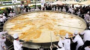 Residents of Haux, France, serve an enormous omelet on Easter Monday. They use more than 4,500 eggs and feed up to 1,000 people.
